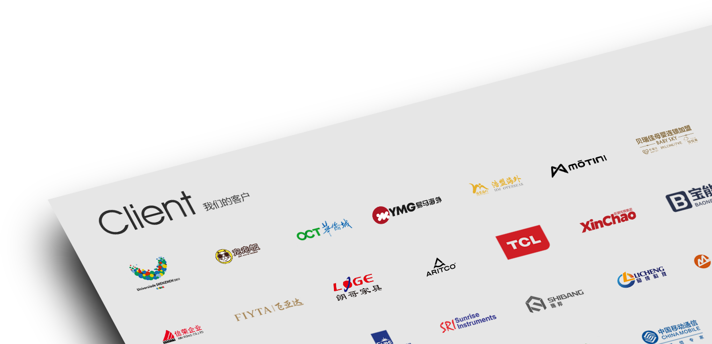 我們的客戶來(lái)自各行各業(yè),為了共同目標(biāo),我們?cè)诠ぷ魃厦芮信浜希瑥膭?chuàng)業(yè)型小企業(yè)到知名品牌,感謝他們對(duì)我們的高要求,感謝他們從不同領(lǐng)域給我們帶來(lái)的挑戰(zhàn),讓我們激情的團(tuán)隊(duì)有機(jī)會(huì)用頭腦與智慧不斷的給客戶帶來(lái)驚喜。